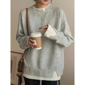 ニットセーター レディース カジュアル 長袖 Tシャツ トレーナー プルオーバーセーター 秋&冬用 ゆったり トップス 防寒 厚手 重ね着 通勤 おしゃれ 韓国風