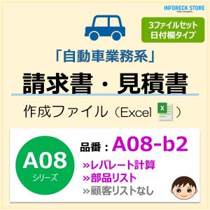 A08‐b2 請求書・3ファイルセット(レバレート計算・日付欄)車両修理 車検 配達 Excel 新田くんソフト