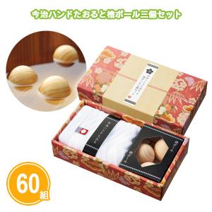 タオル ギフト「今治ハンドたおると檜ボール三個セット 60組」ノベルティ 販促 挨拶 法人 まとめ買い 大量