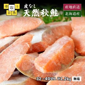 さけ 骨取り 北海道産 天然秋鮭 無塩 無添加 冷凍 切身 パック 計1.2kg 1切30g前後 一切れずつになっていて使いやすくさらにパックはチャック付き 爆買