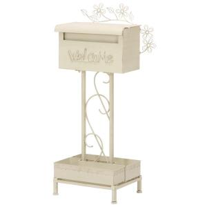 ポスト メールボックス Viora プランター2個セット WH 郵便 置き型 スタンドポスト 花台 棚 収納 北欧 置き型ポスト 郵便 ポスト スタンド セ
