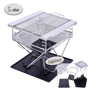 MAGNA(マグナ) ファイアグリル 高さ5段仕上げ 焚火台 L バーベキューコンロ スターターセット 収納ケース 焼網も ステンレス製 5-6人用