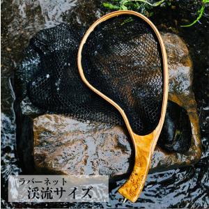 MAGNA(マグナ) ラバーコーティングネット 渓流 タモ網 木製 玉網 ランディングネット 職人仕上げ 曲柄 小型 コンパクトで軽量