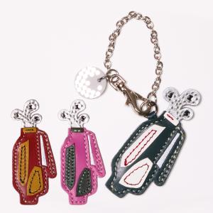 バッグチャーム ゴルフバッグ 牛革製チェーン付き