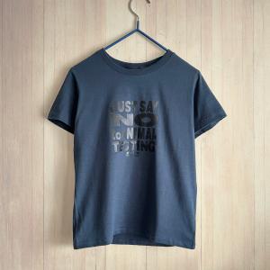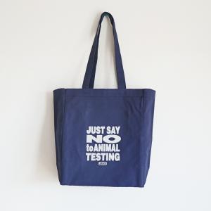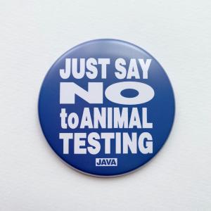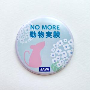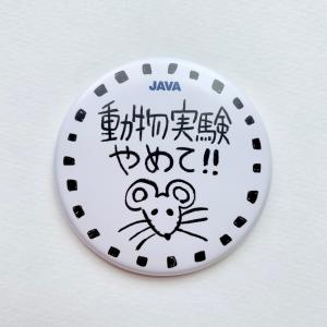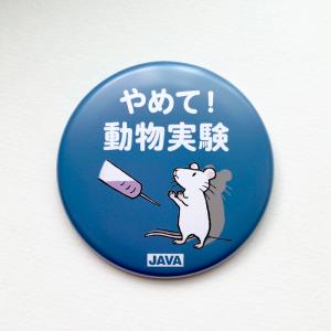 ネズミと注射器の缶バッジ/ブルー(動物実験反対)