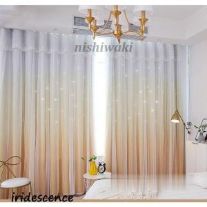カーテン グラデーション ドレープカーテン 遮光 断熱 レースカーテン 二重 一体型 チュール付き 姫系 防音 フックカーテン 星型 丈直し オーダーカーテン