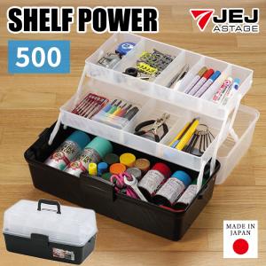 ツールボックス 棚付き 500 シェルフパワー モノトーン 小物 収納ボックス 黒 ブラック 小物入れ アクセサリー収納 パーツ収納 ハンドメイド 手芸 コスメ