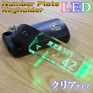 ナンバープレート キーホルダー LED 充電式 クリア 透明 ギフト プレゼント ナンバー 光る きれい ネオンカラー【strp-306】