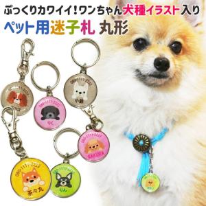 オーダーメイド犬種イラスト入り迷子札 ネームタグ ドックタグ 犬 小型犬 中型犬 大型犬 ワンちゃん犬種イラスト入り ペット用迷子札 丸型