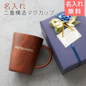 マグカップ 名入れ ステンレス 二重構造 退職祝い ギフト プレゼント 名入れ 二重構造マグカップ ウッドデザイン 360ml Laser