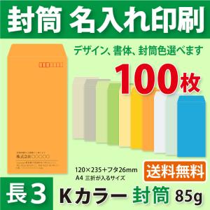 封筒作成 窓付き 長3 Kカラー封筒に黒1色で名入れ印刷 100枚 長形3号 封筒代込み 厚さ85g 標準配送料込み