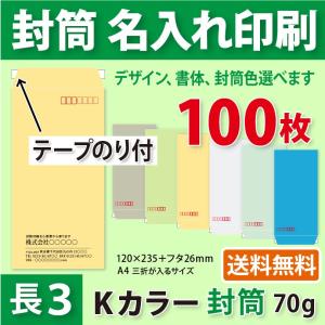 封筒作成 テープのり付き 長3 Kカラー封筒に黒1色で名入れ印刷 100枚 長形3号封筒代込み 厚さ70g 標準配送料込み