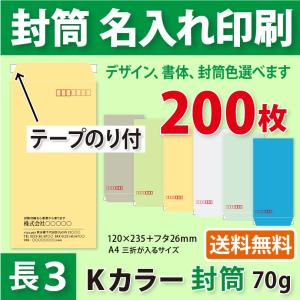 封筒作成 テープのり付き 長3 Kカラー封筒に黒1色で名入れ印刷 200枚 長形3号封筒代込み 厚さ70g 標準配送料込み