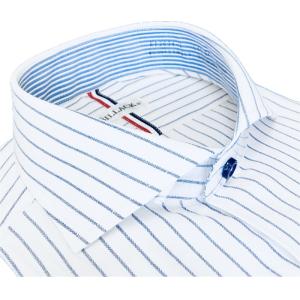 ワイシャツ 長袖 メンズ ドレスシャツ 形態安定 綿高混率 マイクロファイバー ブルー ストライプ レギュラー タブカラー シャツ ビジネス お洒落着 KF2083-6