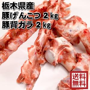 豚 業務用 肉 豚骨 スープ ラーメン 鍋 冷凍 国産 ゲンコツ 2kg 背ガラ2kg 合計4kg ※げんこつ2分の1カット 豚骨 トンコツ 豚ゲンコツ 送料無料