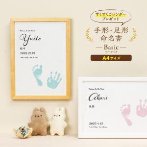 命名書 おしゃれ 手形足形 Basic (A4サイズ) 3枚セット 代筆 手形 おしゃれ 用紙 足形 オーダー フレーム スタンプ 赤ちゃん かわいい プレゼント スタンプ台