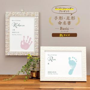 NEW 命名書 手形 オーダー 手形足形 2L Basic 3枚セット スタンプ 台紙 用紙 おしゃれ 出産祝い お七夜 書き方 命名 命名紙 赤ちゃん