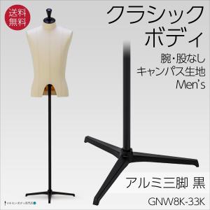 クラシックボディ キャンバス張マネキン 上半身トルソー アルミ三脚 黒半艶 メンズ ピンワーク可 腕なし 股なし GNW8K-33K