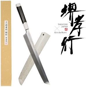 堺孝行 斬月 刺身包丁 柳刃包丁 300mm さしみ包丁 やなぎば包丁 銀三鋼 鏡面加工 片刃 サヤ付き 日本製 青木刃物製作所