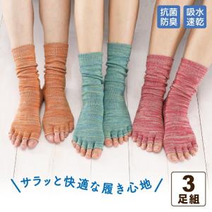 涼綿クール 指先なし 5本指ソックス 3足セット 靴下 レディース 五本指靴下 セット 綿 コットン 快適 抗菌 防臭 吸水 速乾 サンダル 蒸れにくい 臭いにくい 臭い