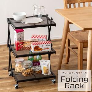 フォールディングラック LFS-56 東谷 折りたたみラック サイドラック スチール キャスター付き ストッパー付き 3段棚 2段階高さ調整 完成品 簡単折りたたみ