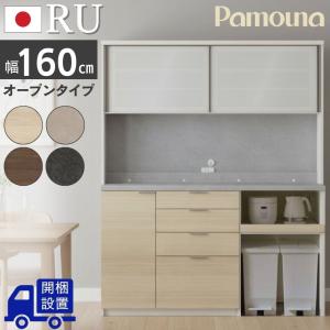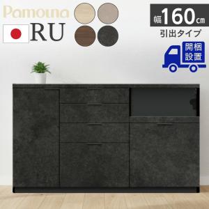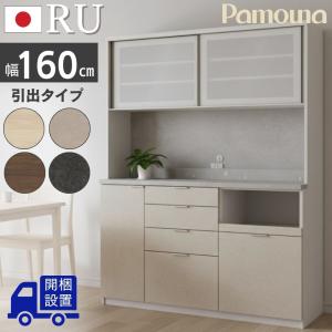 開梱設置付 パモウナ RU 食器棚 キッチンボード ハイタイプ 幅160 完成品 日本製 引出 RU-S1600R カップボード レンジ台 石目調 木目調 艶消し 収納 ラック