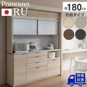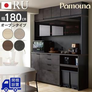 開梱設置付 パモウナ RU 食器棚 キッチンボード ハイタイプ 幅180 完成品 日本製 オープン RU-S1802R カップボード レンジ台 石目調 木目調 艶消し 収納 ラック