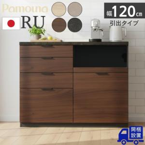 開梱設置付 パモウナ RU キッチンカウンター 食器棚 ロータイプ 幅160 完成品 日本製 引出 RU-S1600R キッチンボード 石目調 木目調 艶消し 収納 ラック 下台