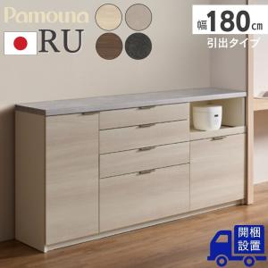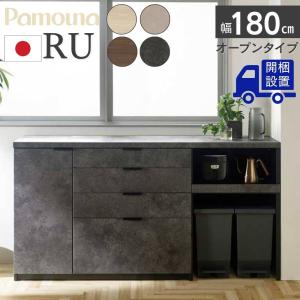 開梱設置付 パモウナ RU キッチンカウンター 食器棚 ロータイプ 幅180 完成品 日本製 オープン RU-S1802R キッチンボード 石目調 木目調 艶消し 収納 ラック