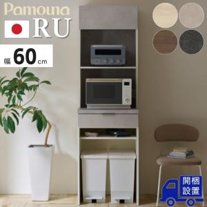 開梱設置付 パモウナ RU キッチンボード レンジ台 幅60 完成品 日本製 ゴミ箱収納 ハイタイプ コンセント付き スリム コンパクト 艶消し RU-S602R 石目調 木目調