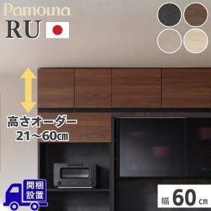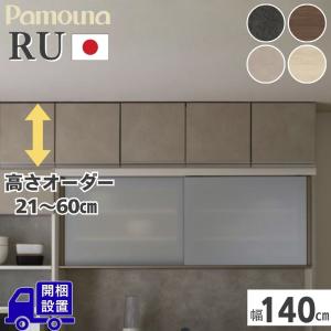 開梱設置付 パモウナ RU 専用 上置き 高さオーダー 幅140cm ハイタイプ ロータイプ 完成品 日本製 突っ張り式 地震対策 収納 上棚 上台 扉付き 石目調 木目調