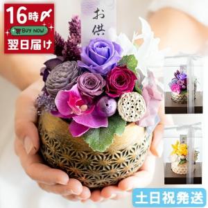 お供え 仏花 プリザーブドフラワー 仏壇用 一対 花器付き 御供えアレンジ あすか2個(1対・左右対称) 喪中見舞い 供花 お悔やみ 贈り物 ブリザードフラワー