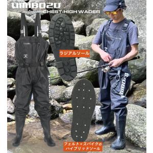 【フェルトスパイクソール】ウェーダーUMIBOZU 釣り 長靴 ナイロン インナーメッシュ 5サイズ ハンガー付 渓流 川用 軽量 完全防水 胴長 24〜28.5cm