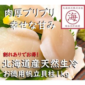 【価格変更10/1】【お徳用割れあり】北海道産天然帆立貝柱1kg(冷凍) ギフト ホタテ ほたて 帆立 刺身