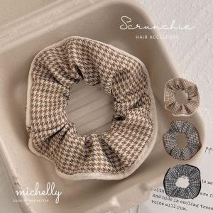 シュシュ 千鳥格子 ヘアゴム くすみカラー 大人可愛い 上品 ふんわり こなれ感 ヘアアレンジ おしゃれ