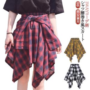 シャツ腰巻き風スカート フレア レイヤード メンズ シャツ腰巻き風スカート レディース ダンス 裏地なし 付け裾 キュロットスカート 薄い チェック柄