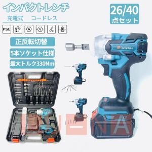 インパクトレンチ 電動 インパクトドライバー 40点/26点セット 1台多役 マキタ バッテリー併用 充電式 正反転切替 ブラシレスモーター 多枚レッド付き 無段変速