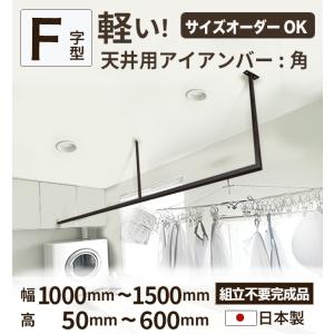 【 F字型2 】【 10mm刻みでサイズが選べる天井アイアンバー 】【 幅1000~1500mm】オーダー 室内 物干し バー 黒 ホワイト ランドリー 洗濯干し 受注生産 日本製