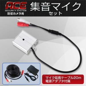 集音マイクセット ACEセキュリティシステムに最適 マイク延長ケーブル20m・電源アダプタ付属 小型集音マイク 防犯カメラ 監視カメラ 周辺機器