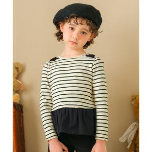 TIME SALE 57%OFF 子供服 女の子 Tシャツ 秋冬 長袖 普段着 通学着 ボーダー リボン つき フリル 切り替え ホワイト×ブラック ネイビー むーのんのん moononnon