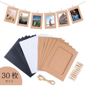 フォトフレーム L判 3色 30枚セット 紙製 壁掛け 吊るす 飾り付け ペーパーフレーム 写真入れ 複数枚 おしゃれ 可愛い 賃貸 ガーランドフォトフレーム 13×9