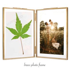 フォトフレーム L判 2面 ガラス 真鍮 ゴールド 2枚 おしゃれ アンティーク クリア 見開き 縦長 ウェディング 写真立て かわいい 折りたたみ