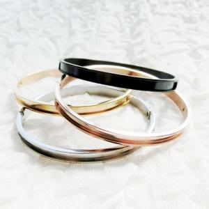 ステンレスブレスレット21 6mm幅 開閉式 シルバー ゴールド ピンク ブラック ハーフエタニティバングル ステンレス グルーデコ アクセサリー土台 メール便OK