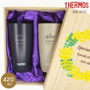 サーモス 陶器調真空断熱タンブラー 420ml デザイン桐箱入 名入れ無料 専用桐箱付き JDM-421 ペア 2本セット ステンレス 父 母