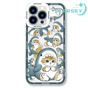 モフサンド iphoneケース サメ 猫ちゃん 可愛い スマホケース 透明 レンズ保護 iPhone15 携帯電話ケース 多機種対応 かわいい 誕生日 プレゼント ギフト