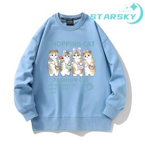 トレーナー モフサンド SHOPPING CAT 可愛い 猫ちゃん スウェット 長袖Tシャツ トップス 棉 男女兼用 長袖 春秋冬 裏起毛あり プレゼント ギフト