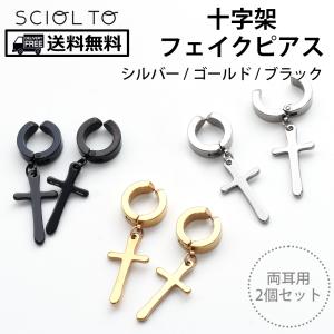 フェイクピアス ノンホールピアス イヤーカフ クロスデザイン [両耳 2個] ピアスホール ピアス穴不要 イヤリング リングピアス 十字架 [SCIOLTO(ショルト)]
