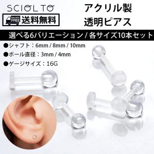 ピアス 透明ピアス アクリル ボディピアス [16G 10本セット] シークレットピアス イヤーロブ 耳たぶ ヘリックス 軟骨ピアス [SCIOLTO(ショルト)]
