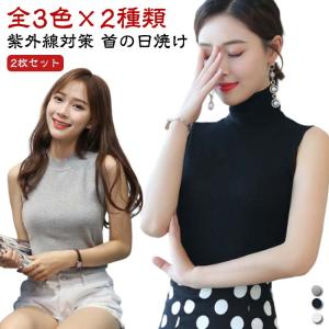 ハイネックtシャツ ノースリーブ 2枚組 2枚組 春夏 綿 シンプル タートルネック タンクトップ トップス カットソー 薄手 インナー 無地 ボトル
