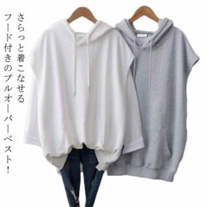 ベスト フード付き フレンチスリーブ トップス スウェット プルオーバー レディース パーカーベスト おしゃれ ベスト スエット 袖なし ノースリーブ